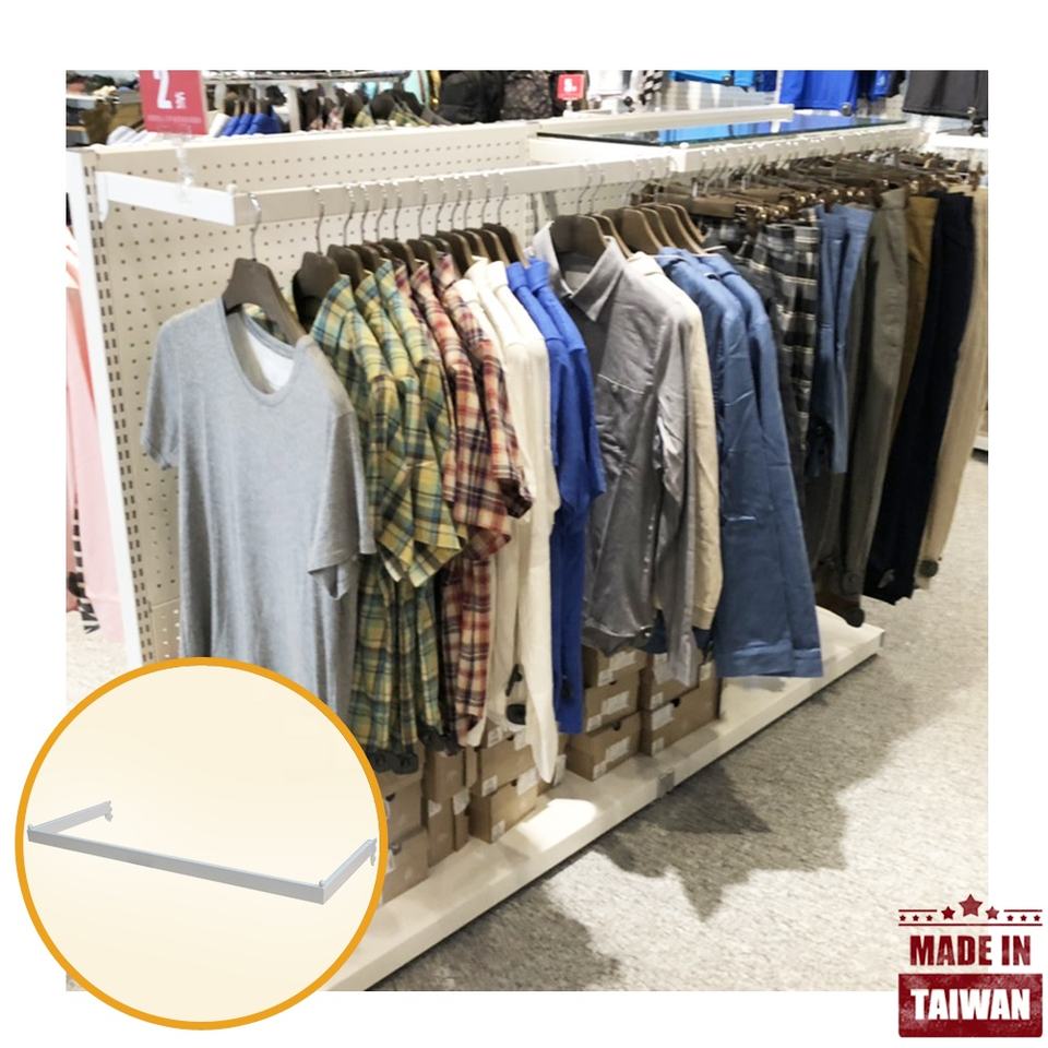 Application:Metal clothes pegboard rectangle tube hanging rails for shop display
