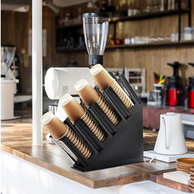 Countertop 4 Compartment Plastic Storage Rack Disposable Coffee Paper Cups Holder Paper Cup Dispenser Paper Cup Holder Tray