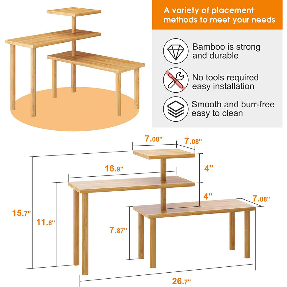 Countertop Organizer Corner Shelf Bamboo 3 Tier Space Saving Rack