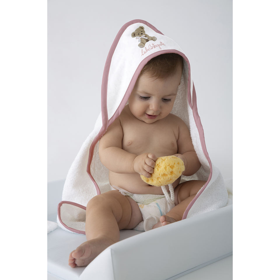 Country Bear Rose Embroidered Kids Bath Towel with Hood + Gloves 75x75 Square Roll Pattern for Baby Care