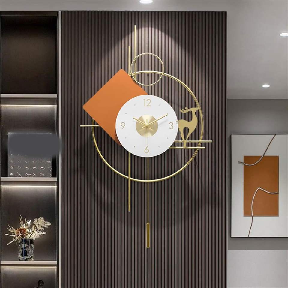 Country Style Metal Frame Wall Clock For Wedding Gift, Orange & Golden Finishing Durable Metal Wall Clock for Bedroom