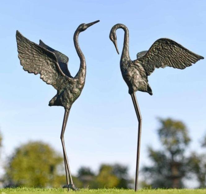 Country Style bronze Crane Figurine Bird Statue large Size Outdoor Garden Decor Modern Heron Crane Statue Birds Metal Animals