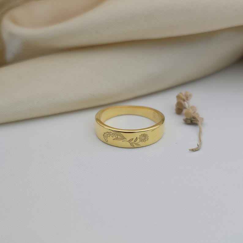 Couple Birthflower Ring Personalized Floral Symbol Jewelry Wedding Anniversary Gift Meaningful Daily Wear Fashion Ring