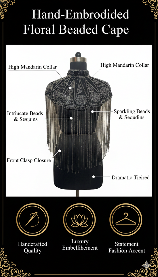 Couture Luxury Beaded Fringe Shoulder Cape Shawl for Dance Bridal Evening Wear Handmade OEM ODM Factory Direct Supplier Top