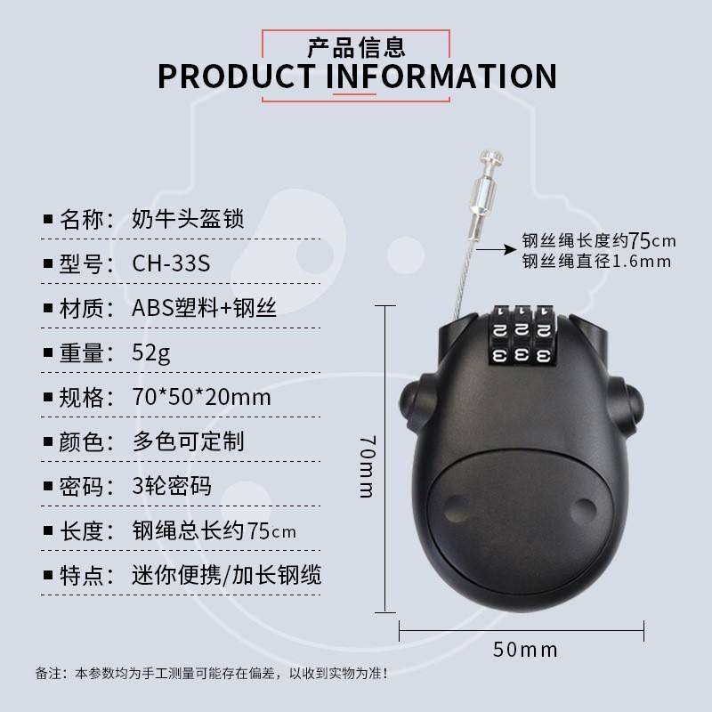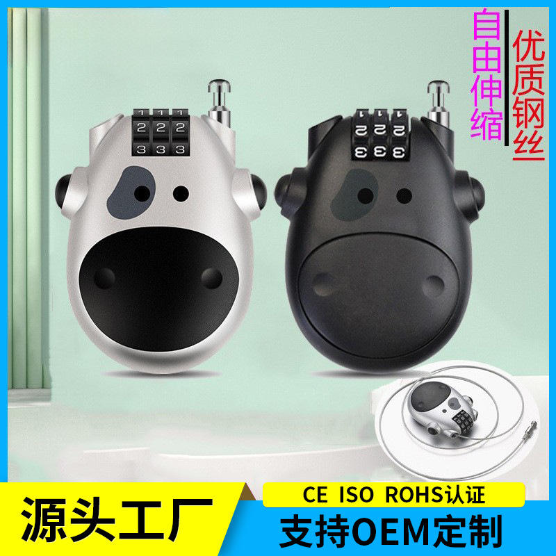 Cow Design Adjustable Wire Rope Lock 120Cm For Luggage Stroller Scooter Helmet Bicycle Security
