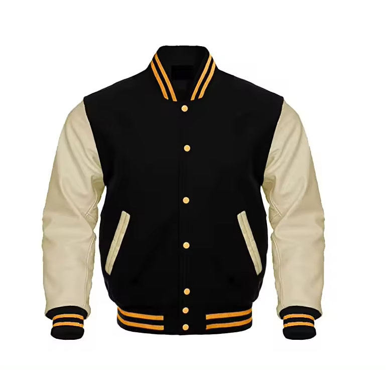 Cow Hide Leather Sleeves Genuine Wool Body Letterman baseball Jacket Covered Button Closure Comfortable jacket for men