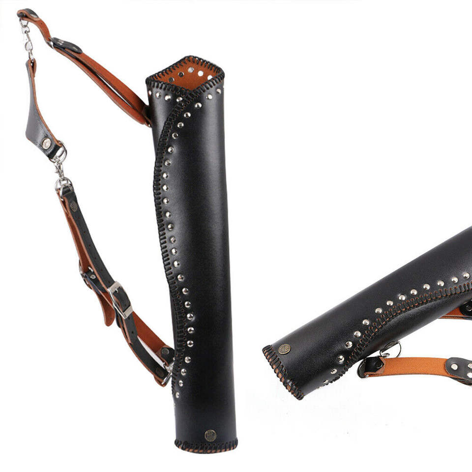Cow Leather Archery Bag Back Strap Arrow Quiver Storage Case Arrow Holder Black