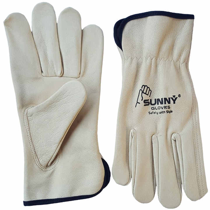 Cow Leather Rigger -Gloves Beige Color Driver Working -Gloves