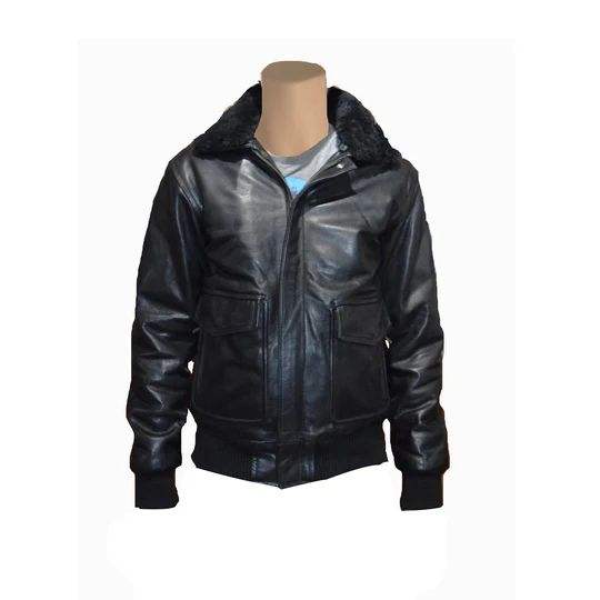 Cow Skin Bomber Style Shirt Collar Rib Knitted Cuff Flight Type Winter Plus Size Black Sheep Fur Leather Jackets for Men