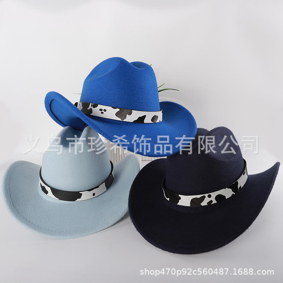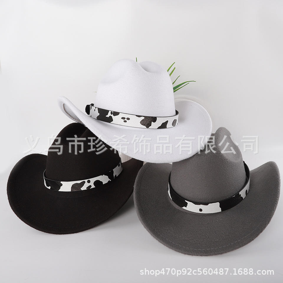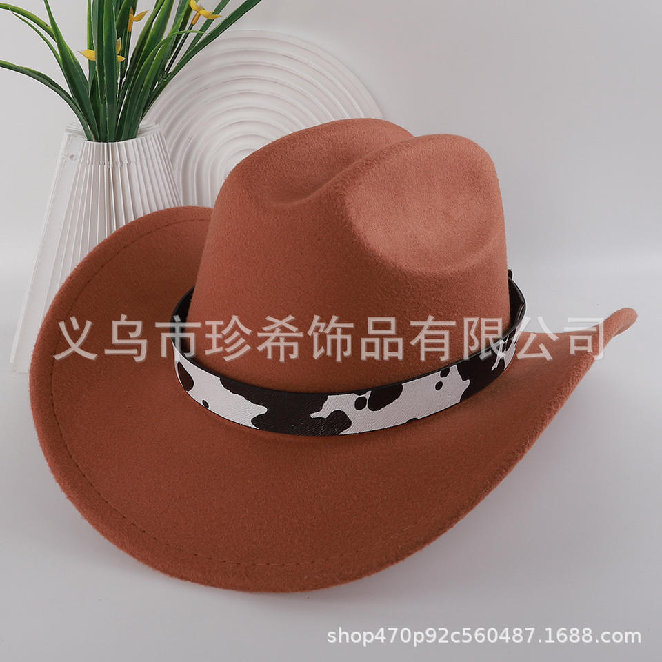 Cowboy Hat With Cow Pattern Band Polyester Fabric Warm Sun Shading Fashion Accessory For Men Women Spring 2025