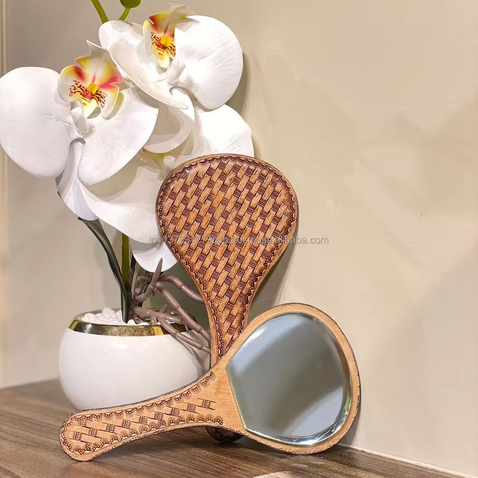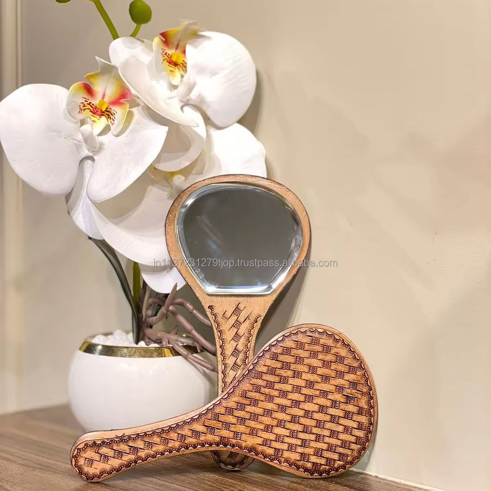 Type:Classic Vintage Tooled Leather Handheld Mirror