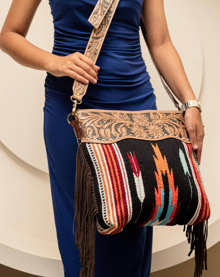 Cowgirl Hand Tooled Saddle Blanket Crossbody Bag With Tassel Genuine Leather Concealed Carry Bag for Women Western Handbag Purse