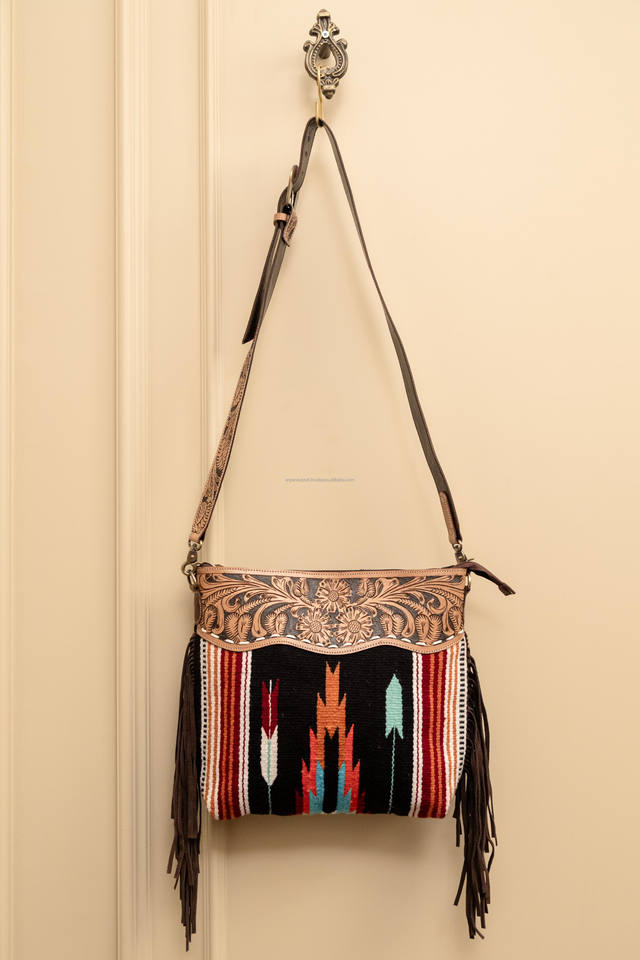 Cowgirl Hand Tooled Saddle Blanket Crossbody Bag With Tassel Genuine Leather Concealed Carry Bag for Women Western Handbag Purse