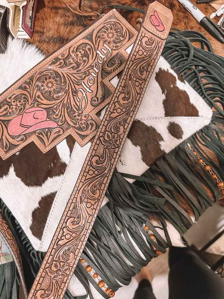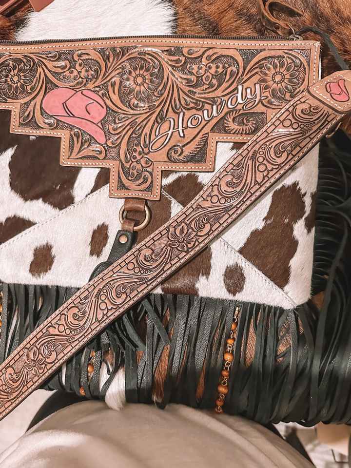 Cowgirl Howdy Women's Luxury Hand Bag Tooled Floral Design Vintage Sling Bag Cowhide Hair on Ready to Stock