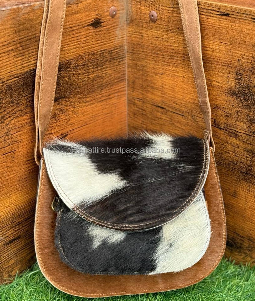 Western Stylish Hair On Hide Cowhide Genuine Leather Sling Bag