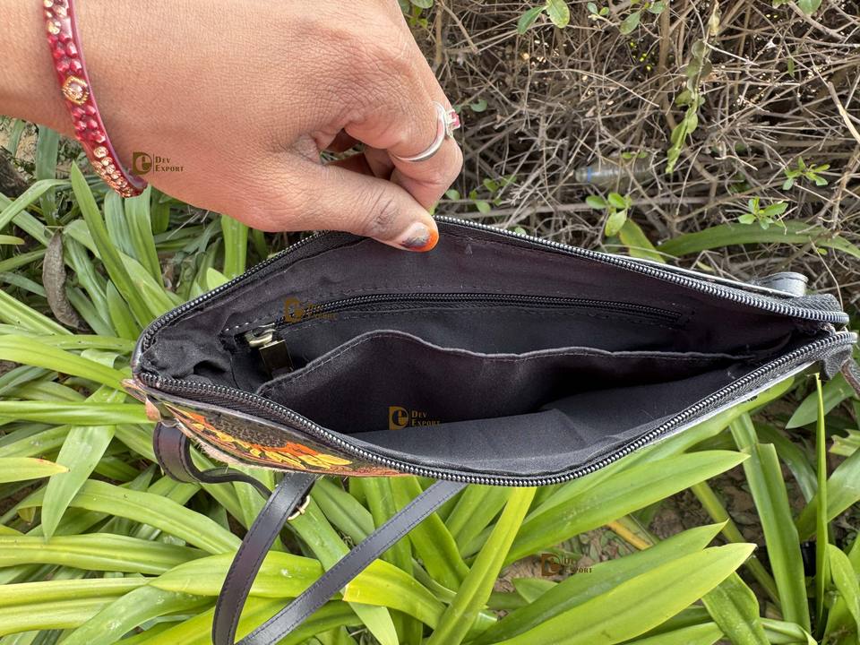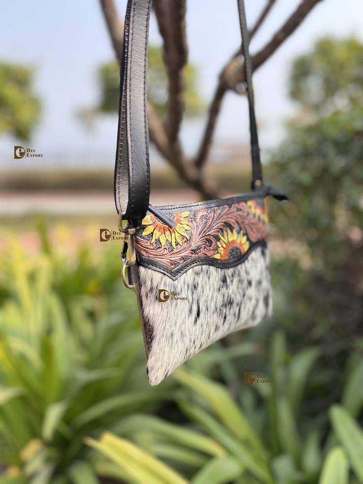Cowhide Fur Leather Handbag Hand Tooled Carving Leather Sling Bag Gypsy Boho Handmade Western Stylish Multi Uses Bags