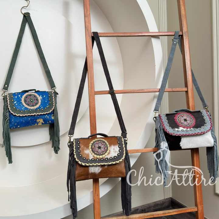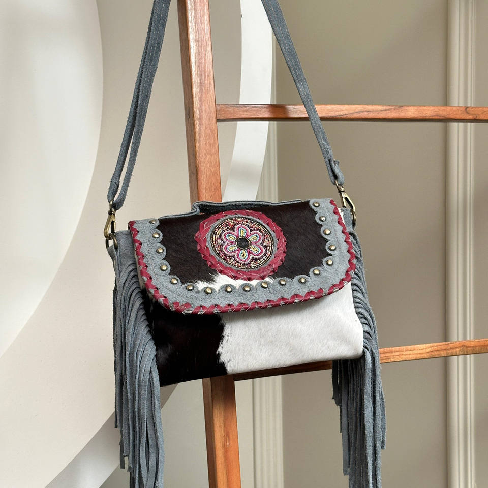 Cowhide Fur Leather Handbag New Style Handmade Fringe Western Style Bag Adjustable Strap for Women's Girls