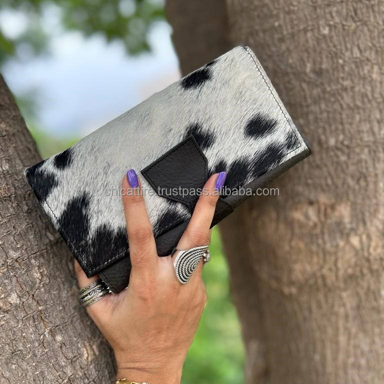 Cowhide Fur Leather Wallet Clutch Hair on Hide Fur Multi Uses Purse Calf Leather Clutch Purse Western Women's Uses Clutch