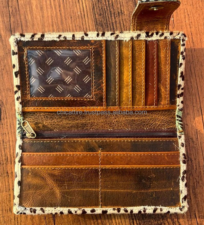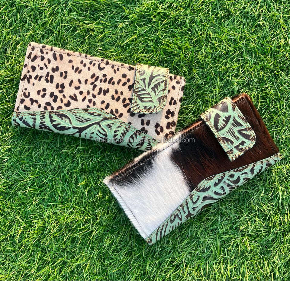 Cowhide Fur Leather Wallet for Women Embossed Print Leather Purse Clutch Card Case Western Pattern Hot Sale Stylish Clutch
