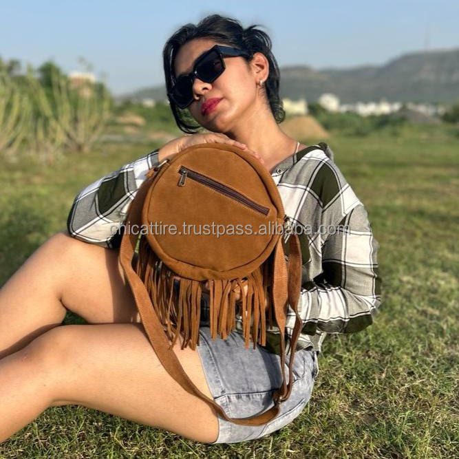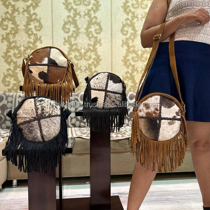 Product name:Genuine Cowhide Leather Fringe Round Bag
