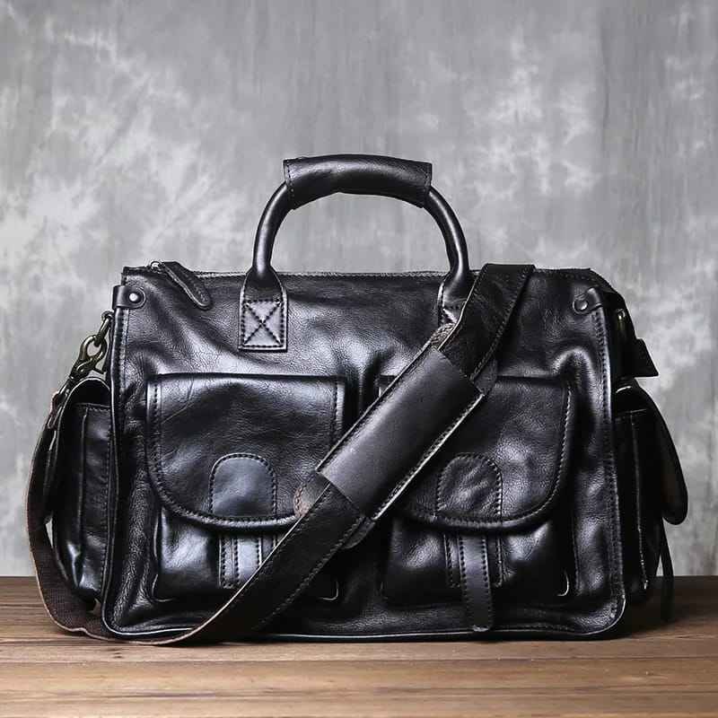 Cowhide Genuine Leather Men Briefcase Laptop Bag Work Business Bag Shoulder Messenger Bag Male Tote Handbag
