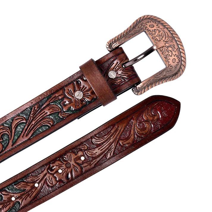 Cowhide Hand-Tooled Leather Vintage Steel Pin Buckle Rustic Style Handmade India Heat-Transfer Printed All Lengths Available