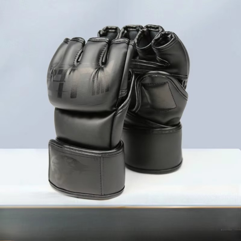 Cowhide LeatherHalf Mitts MMA Fighting Kick Boxing GlovesFingerless Punching Heavy Bag with Paddding Gloves