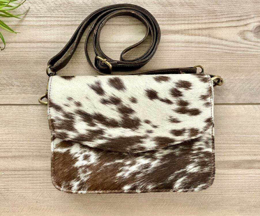 Cowhide Purse Crossbody Handbag Clutch Bag Brown Cow Hide Hair on Calf Hide Leather Fur
