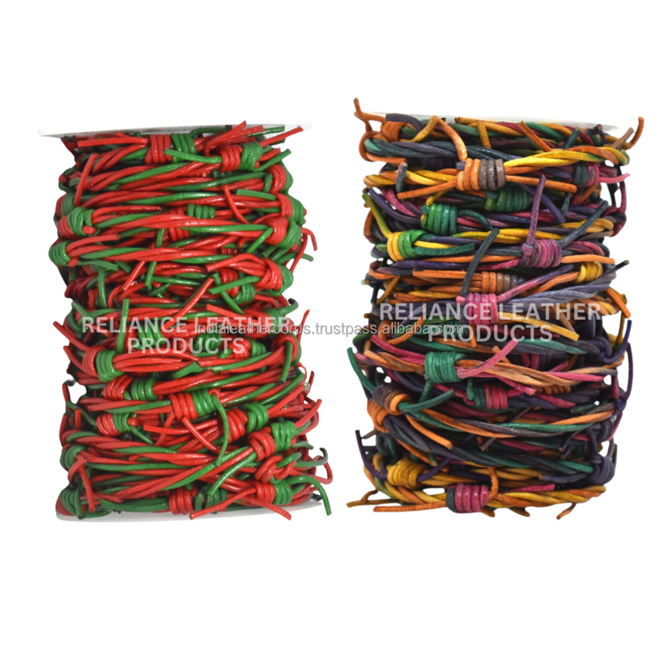 Cowhide Red-Green Dual Color leather barbed wire,leather fencing cord jewelry,twisted barb wire bulk,1-2.5mm,DIYs,charm,bracelet
