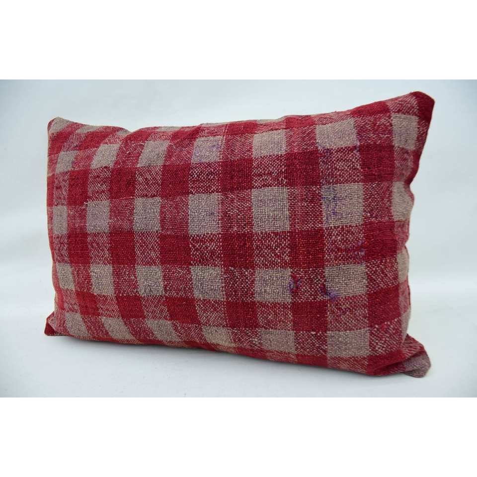 Cozy 16x24 Inch Red Vintage Pattern Plaid Wool Kantha Pillow Woven Technique