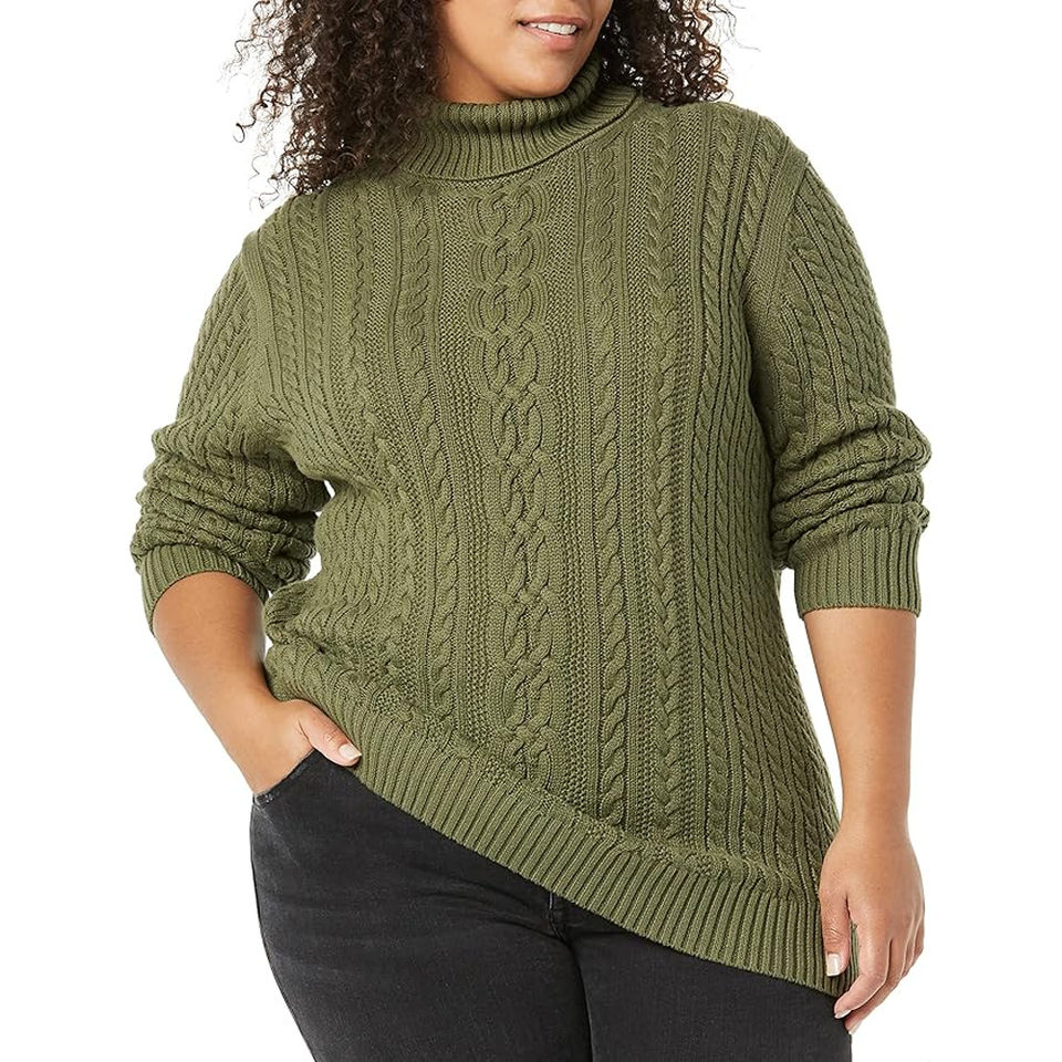 Cozy Cable Knit Women's Turtleneck Sweater High Quality Breathable 100% Cotton Classic-Fit Lightweight Long-Sleeve for Winter
