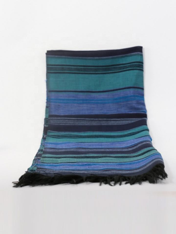 Cozy Handmade Agave Silk Striped Shawl for Women Woven with Bright Tassels Hand-Waved Multicolour Scarf for Winter