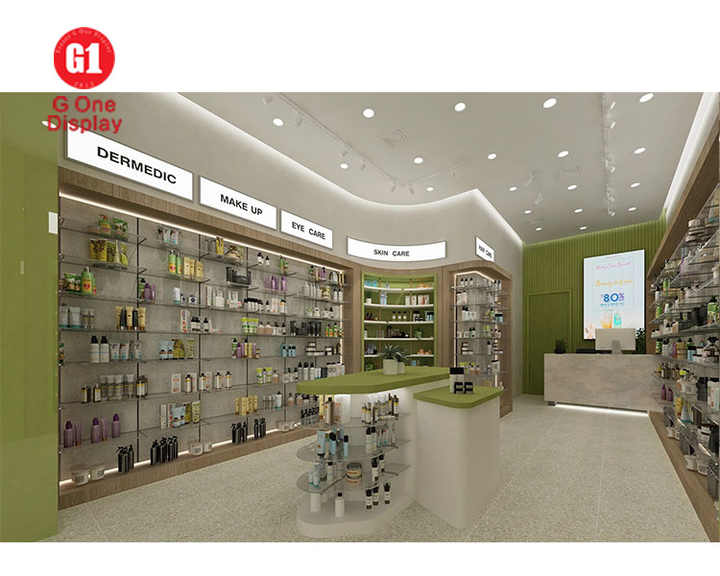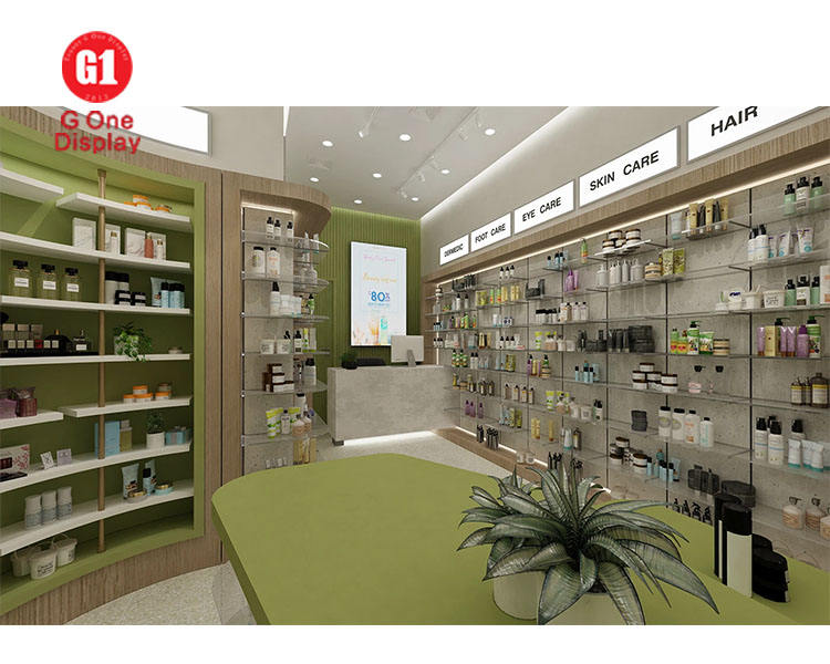 Cozy Retail Custom Skincare & Perfume Shop Display Shelves One-stop Solution Modern Cosmetic Shop Fitting