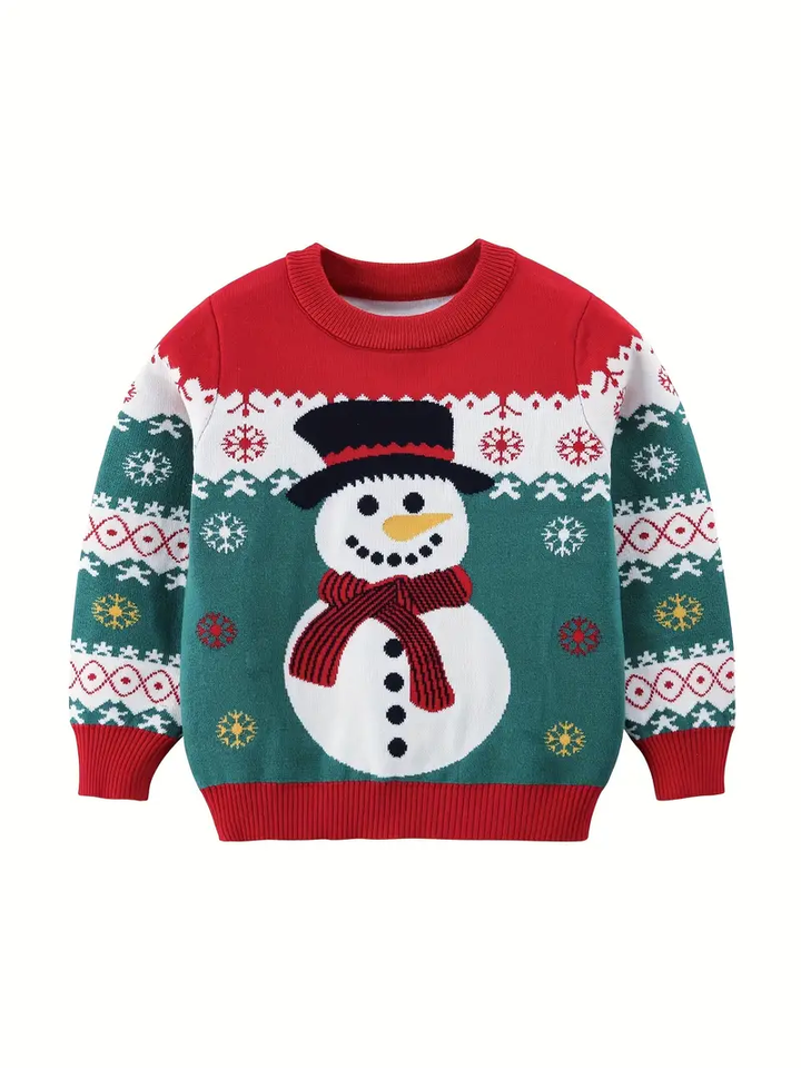 Cozy Unisex Christmas Snowman Wool/Acrylic Knit Sweater Boys Long Sleeve Eco-Friendly Wool Liner Fall Winter Casual Baby