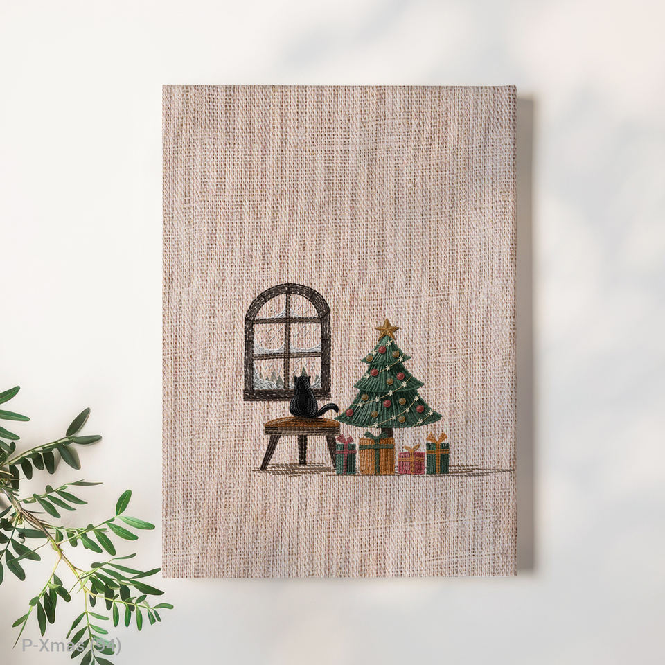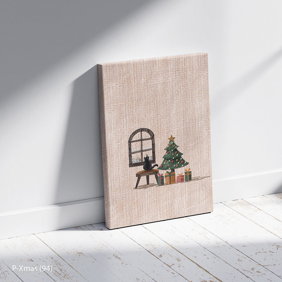 Cozy Modern Window View Christmas Tree Canvas Wall Decor with Wood Frame-Bulk Order