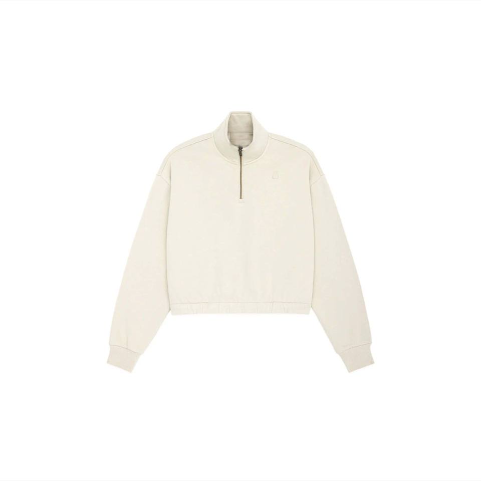 Cozy and Stylish Women's Cream Half-Zip Pullover with Funnel Neck Zipper Sweatshirt for Casual Layering Funnel Collar Hoodie