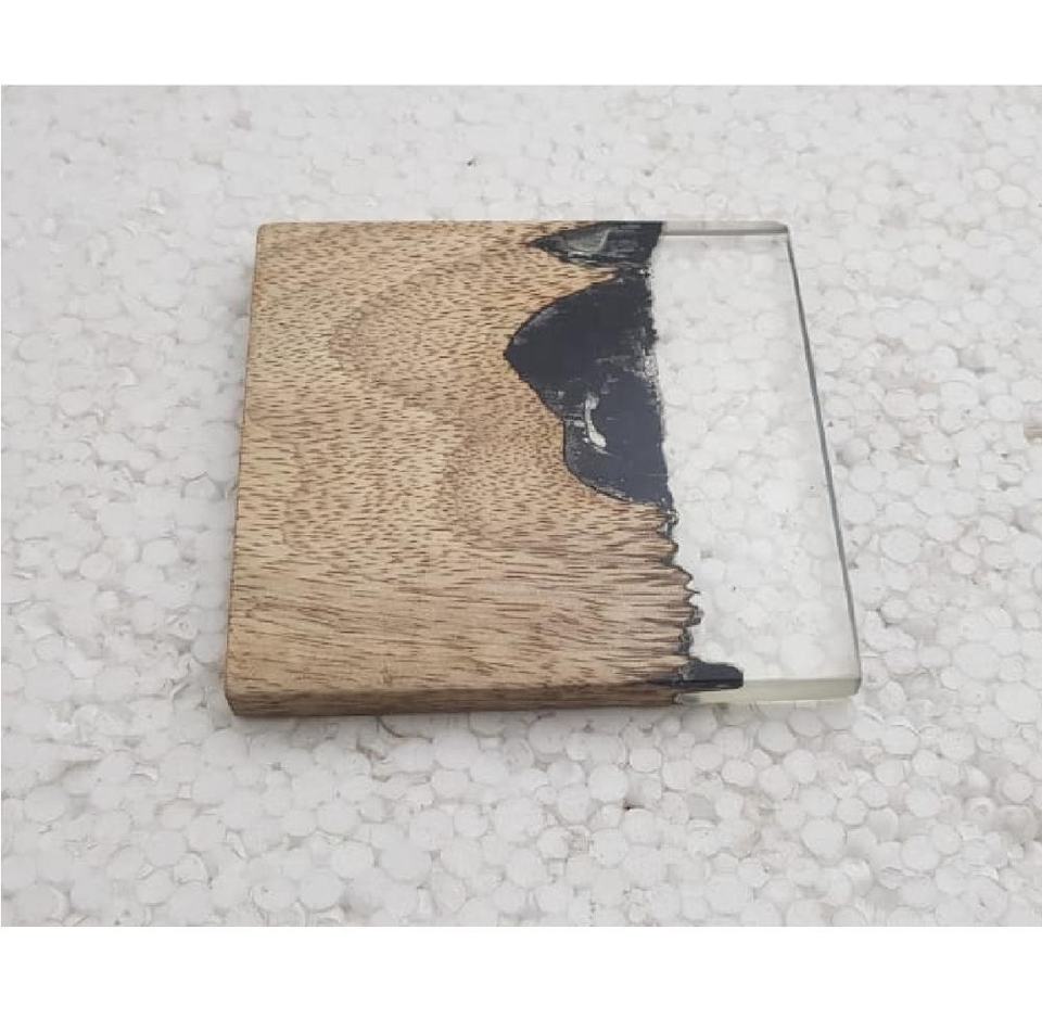 Crackle Burning Wood Clear Resin Joined Coaster Sets
