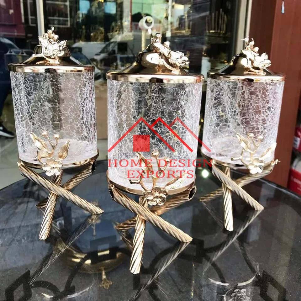 Crackle Glass Coffee Powder Storage Canister Set of 3 for Kitchenware Usage High Quality Glass Foods Canister Set of 3