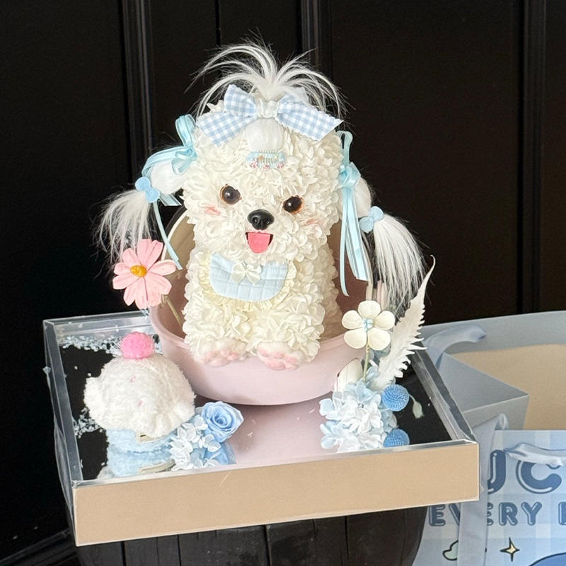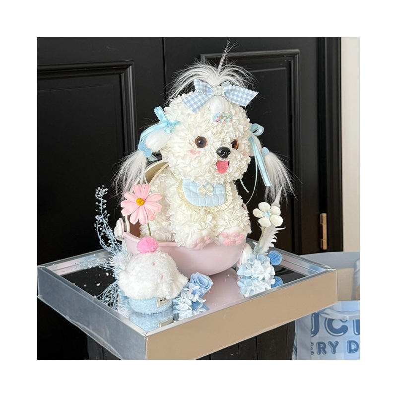 Cradle little milk dog Immortal Flower Rose Gift Box Cute Pet Dog Series Decoration Valentine's Day Gift