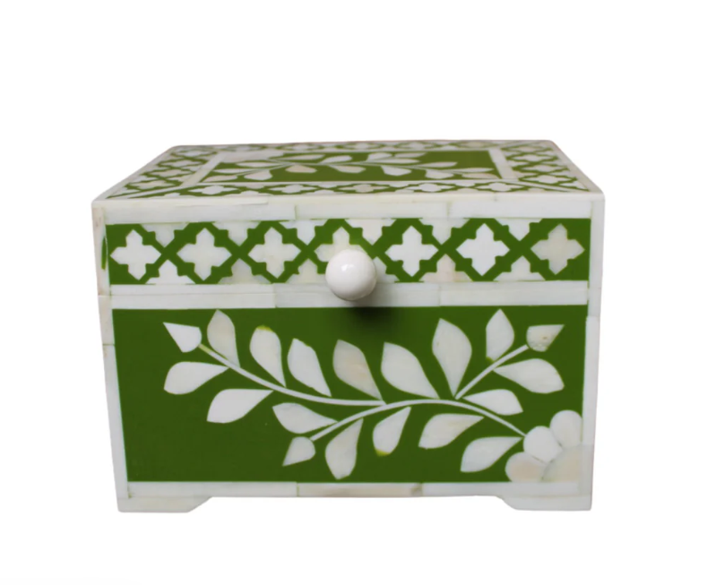 Decorative Handmade Bone Inlay Box Floral Love Home Accent & for Jewellery Storage with Attached Lid for Opening Mechanisms