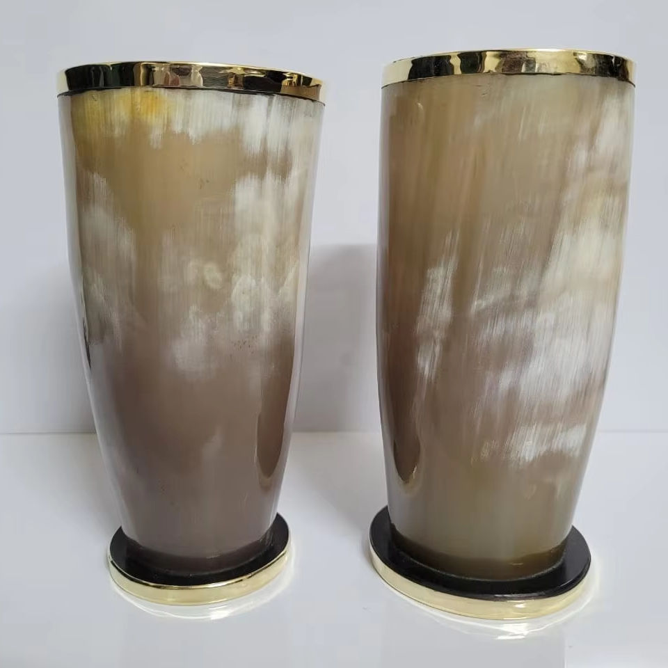 Authentic Hand-Carved Buffalo Horn Shot Glass with Viking-Inspired Animal Designs Polished Viking Style And Brass Rim Low Price