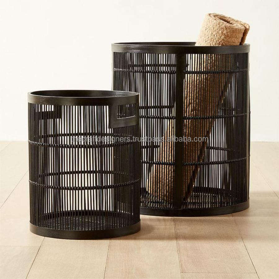 Crafted Cylindrical Wire Baskets Set Household Beverage Container Baskets And Bins Black Powder Coated Multifunction Basket Set