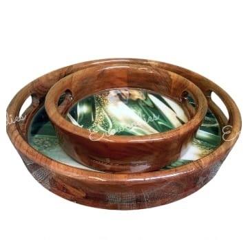 Keyword:Flourrsha Natural Brown Hand-Painted Tray