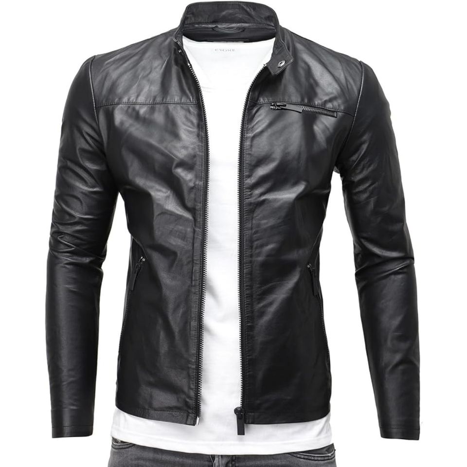 Crafted in premium sheep leather this men biker waxed jacket delivers durability smooth feel and classic road ready attitude