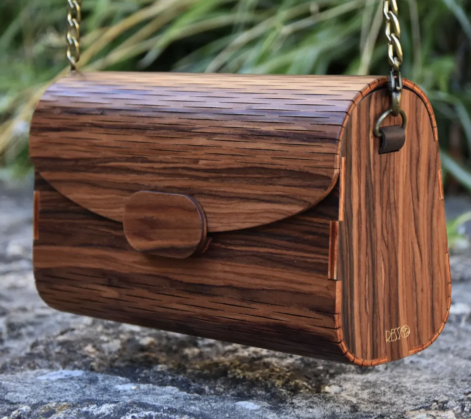 Crafts Galore Geometric Wooden Clutch Bag by Tayyab Handicraft Vintage Style Wedding Handbag with RFID Feature for Summer