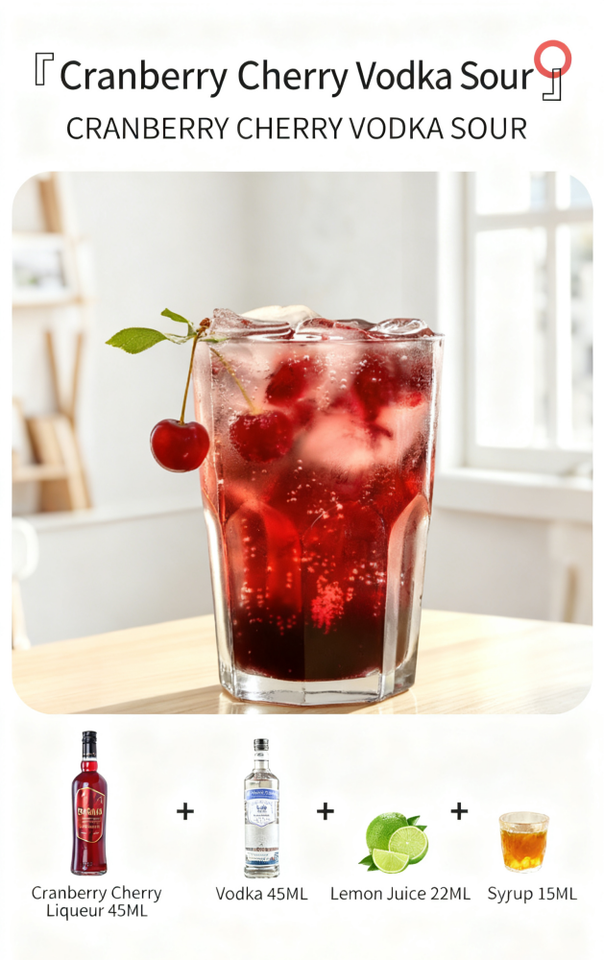 Cranberry Cherry Flavored Liqueur 8% ABV 700ML Bottles B2B Bulk ODM Custom MOQ50 China Factory Bar Caf Supermarket