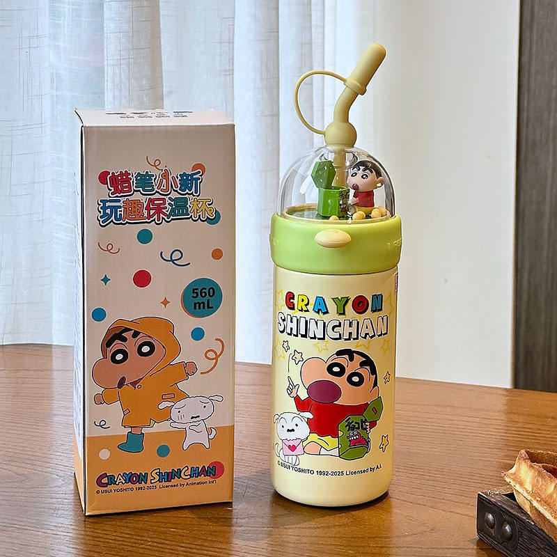 Crayon Shin-chan Insulated Water Bottle 560Ml With Straw For Children Summer 2025 Back To School