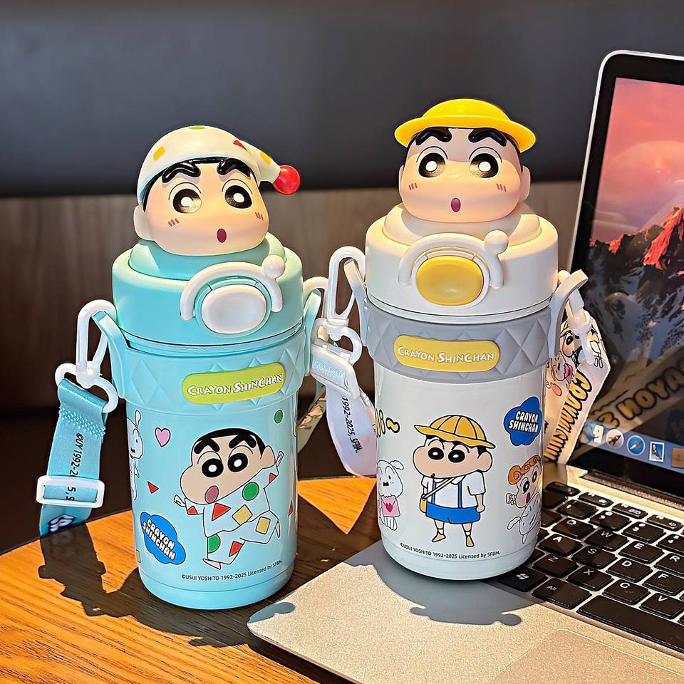 Crayon Shinchan Children's Insulated Water Bottle 316 Stainless Steel Straw Lid For School Use Summer 2025 Model