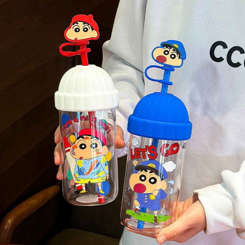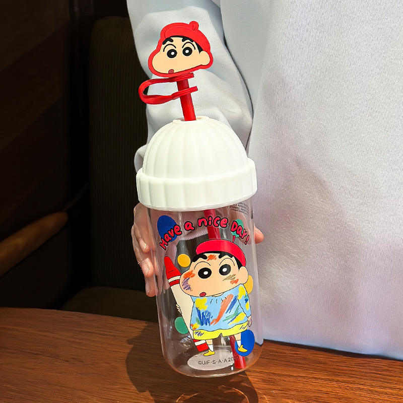 Crayon Shinchan Glass Water Cup 500Ml With Straw Cartoon Design For Travel And Office Use