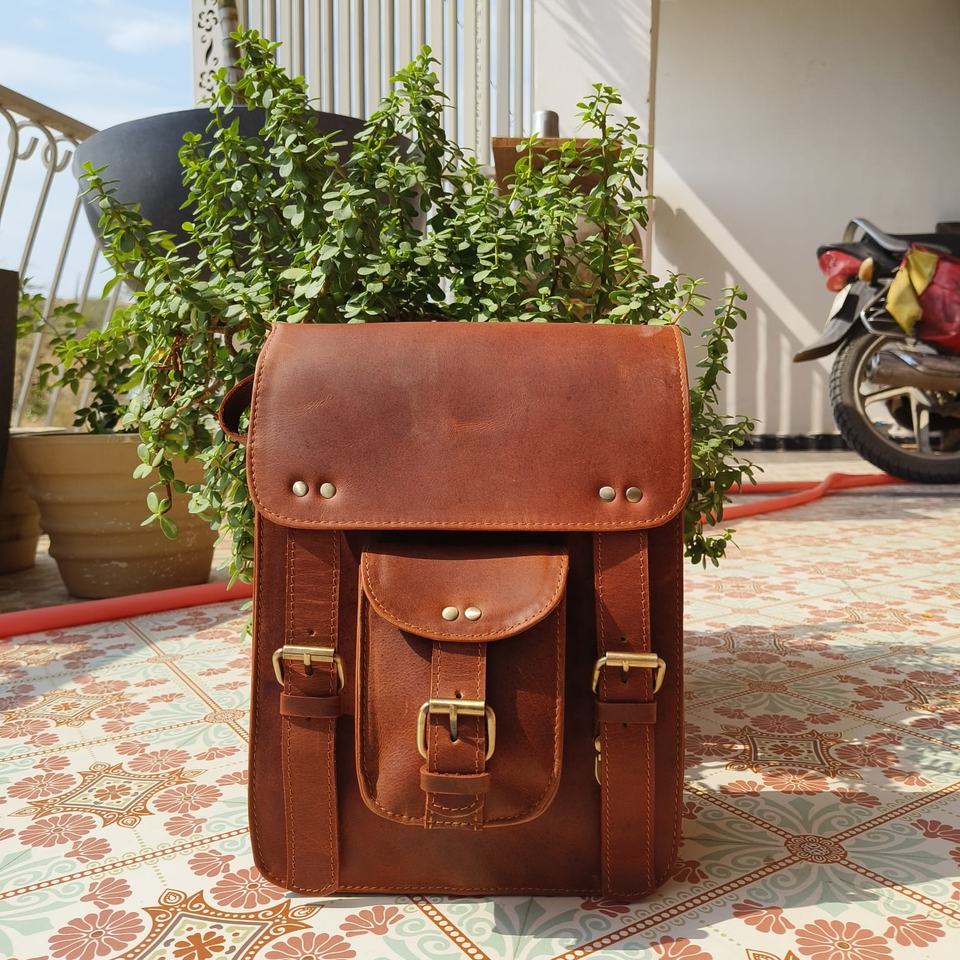 Crazy Horse 100% Genuine Leather Vertical Crossbody Messenger Bag Stylish Unisex Rock Fashion Zipper Closure Front Buckle Locked